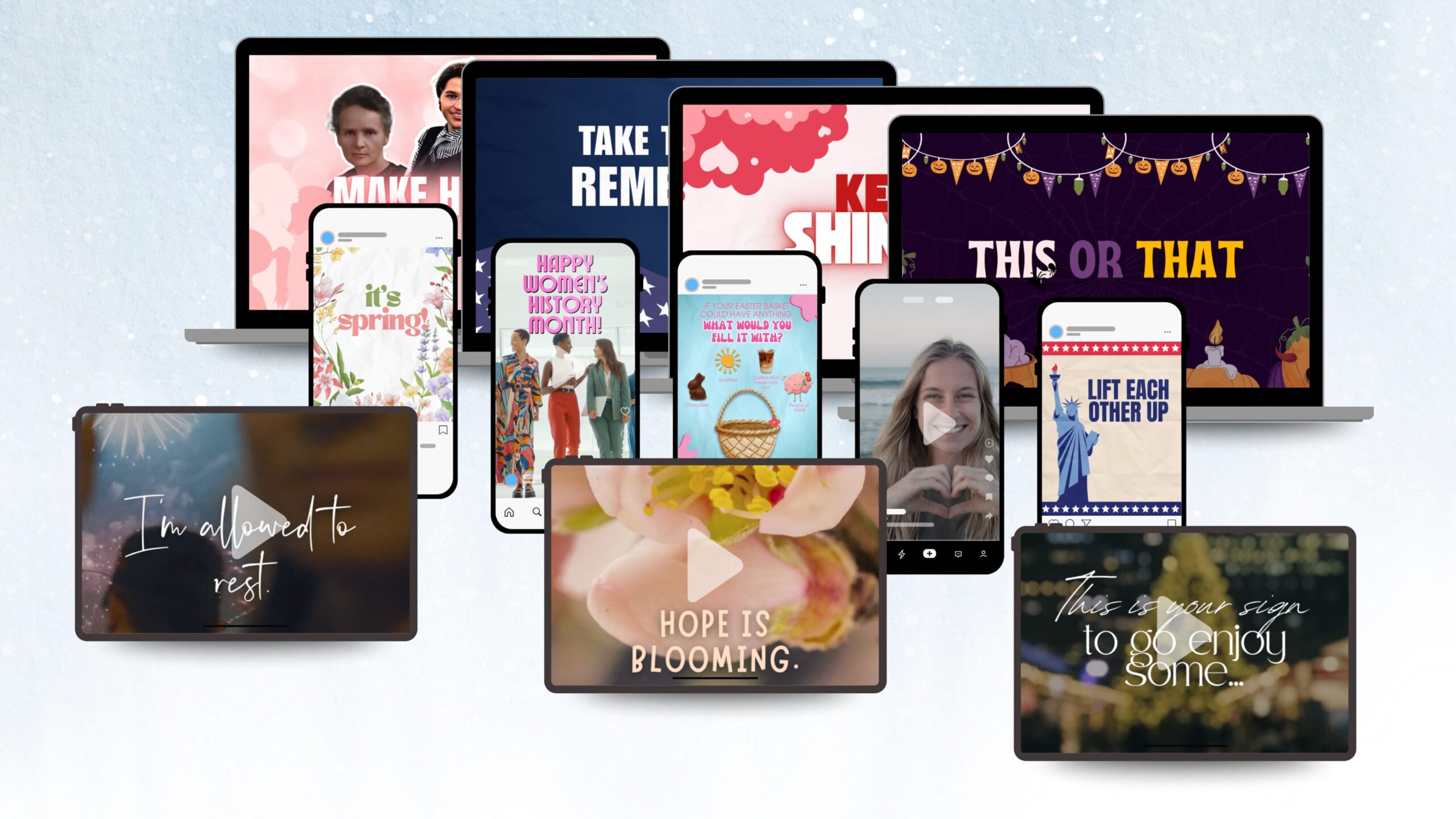 - Coordinating graphics, reels, and fully editable captions (one for each month or season)
